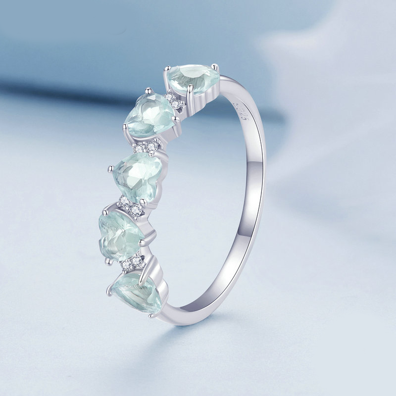 Exprimez-vous avec ce grand classique de la joaillerie. Confectionnée à la main en argent 925/1000ᵉ, la Bague Coeur Océane se compose d'un anneau, incrusté de quatre oxydes de zirconium de couleur aigue marine. Des micro-grains scintillants sertis entre les zircons complètent l'ensemble. Vous pouvez porter cette sublime bague avec d'autres anneaux aux tons similaires pour créer un look monochrome ou choisir des métaux plus contrastés pour arborer un ensemble plus rayonnant.