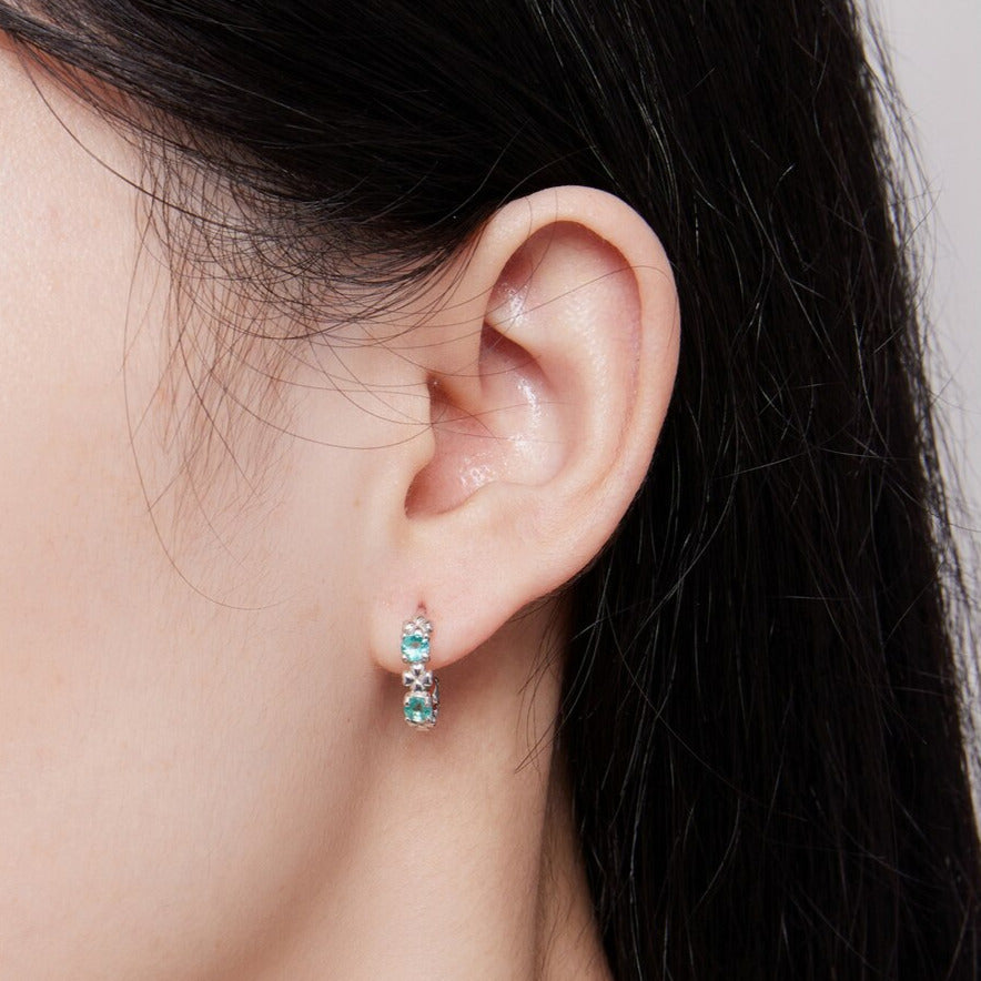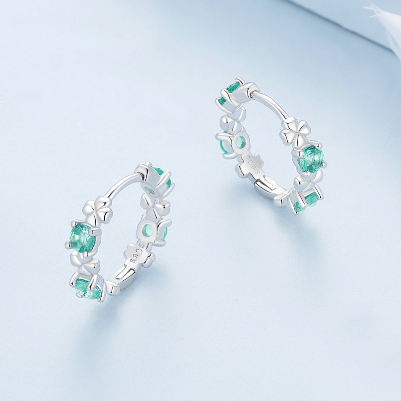 Des boucles d'oreilles coeur subtiles à l'effigie de l'amour et de la chance. Gardez auprès de vous les symboles de la chance et de l'amour grâce à ces délicates boucles d'oreilles en argent 925/1000ᵉ. Finies main, elles se composent d'une série alternée de trèfles à quatre feuilles à la surface polie, et de zircons en forme de coeur de couleur aigue-marine. Cet élégant bijou coeur égayera vos looks avec style tout en apportant une bonne dose de chance et d'amour à votre quotidien.