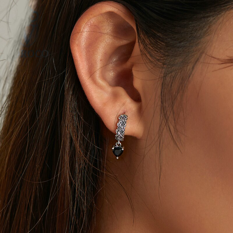 Boucles d'Oreilles Coeur Noir et Eclat de Roses