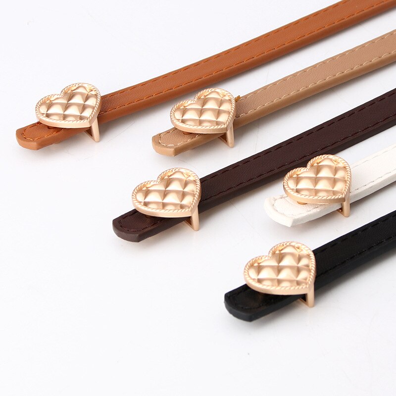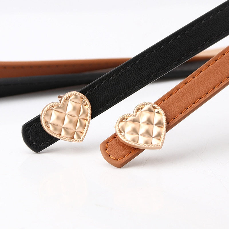 Dynamisez vos tenues avec cette élégante ceinture fine pour femme déclinée en 4 coloris tendance. La boucle couleur or en forme de coeur apportera une touche de glamour à votre look.