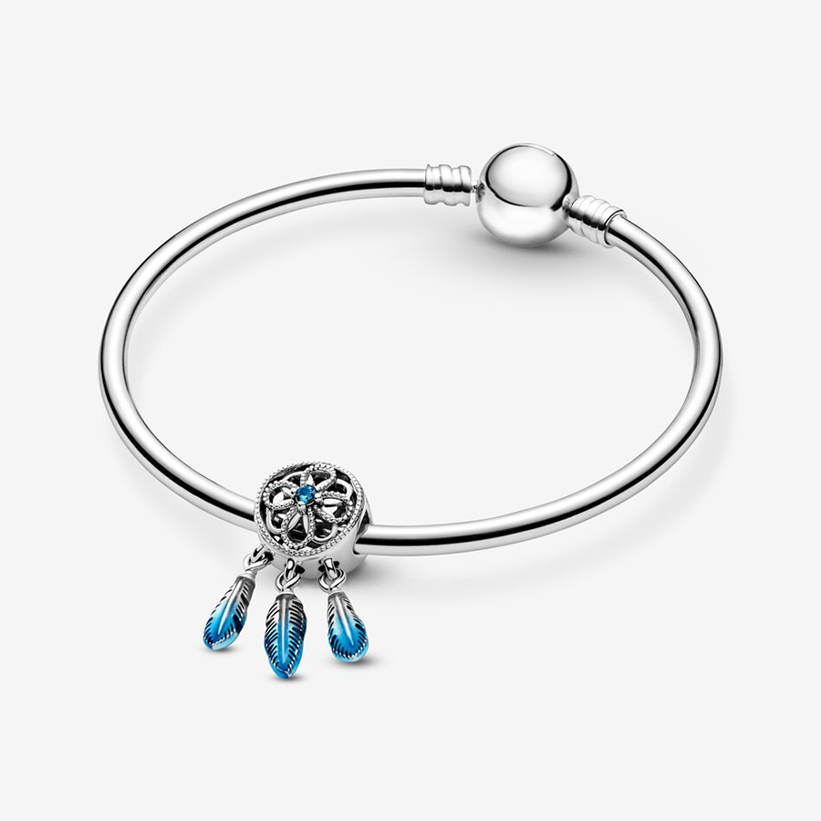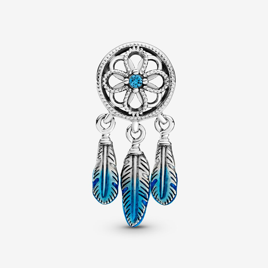 Adoptez ce charm attrape-rêve, véritable symbole de l'espoir. Création originale, ce charm en argent sterling se présente sous la forme d'un motif floral au bout duquel on retrouve trois plumes en pendentif. Fini à la main avec le plus grand soin, le charm se caractérise par ses détails bleus turquoise et l'ornement de pierres incolores scintillantes. La citation "Croyez au pouvoir de vos rêves" parachève cette magnifique bijou. Vous pouvez le porter seul en pièce maîtresse autour d'un de nos Bracelets à Charms ou le combiner à d'autres Charms de notre collection pour vous confectionner un style unique !
