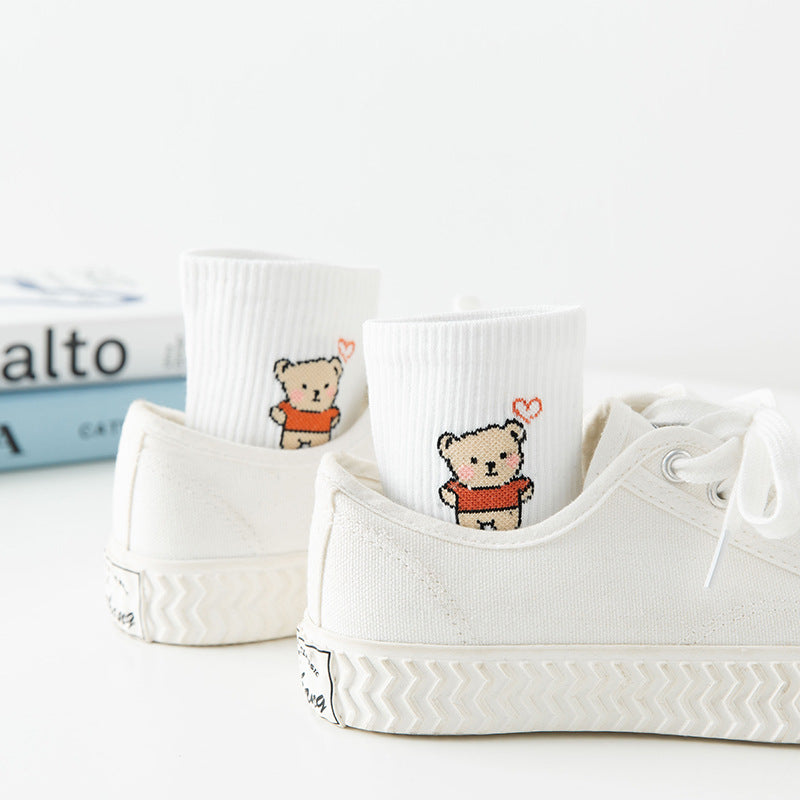 Chaussettes Coeur Ourson Blanches