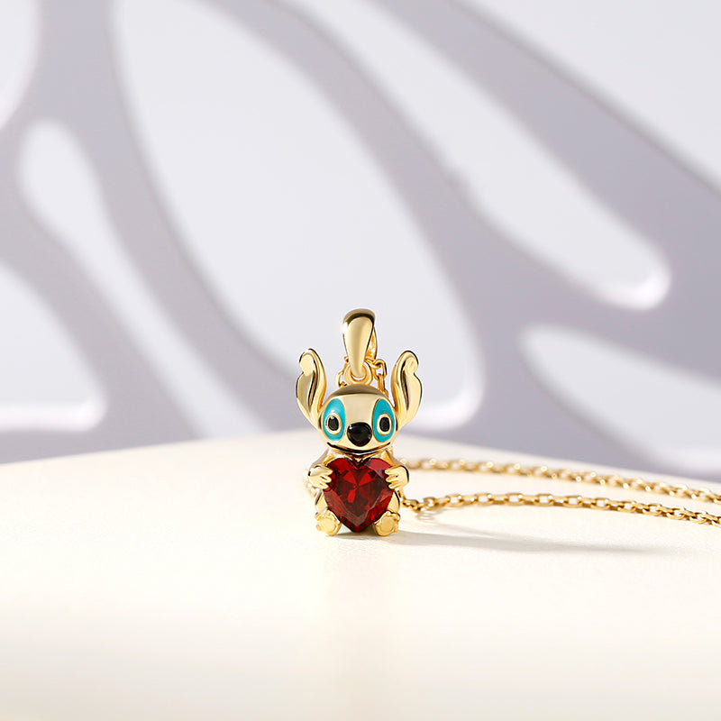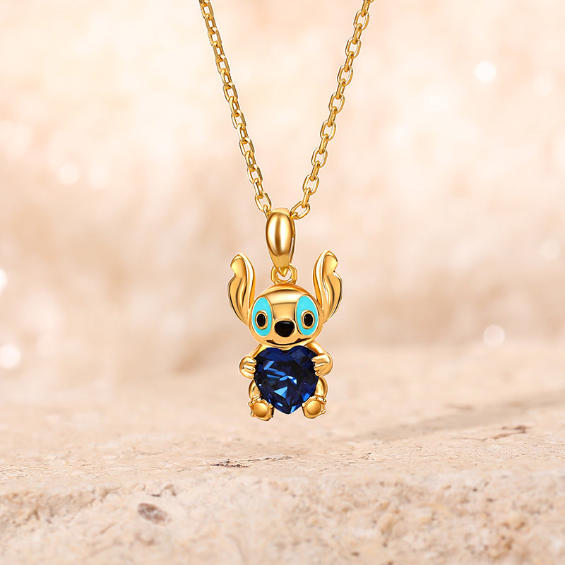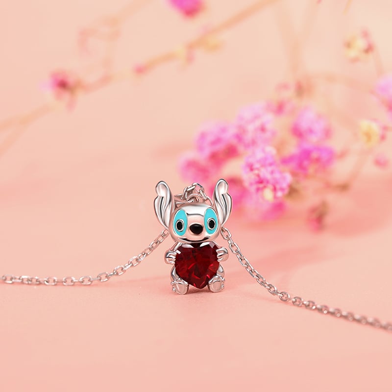 Un joli collier avec Stich en pendentif, on adore ! Ce petit animal, un extraterrestre koala, est un personnage fictif d'un célèbre film d'animation. Cet adorable collier est orné d’une pierre scintillante en forme de cœur enlacée par Stich. Il a de grandes oreilles de lapin, une large bouche, un nez tout rond, et des yeux noirs dont le pourtour est souligné par une résine façon émail de couleur bleue turquoise.