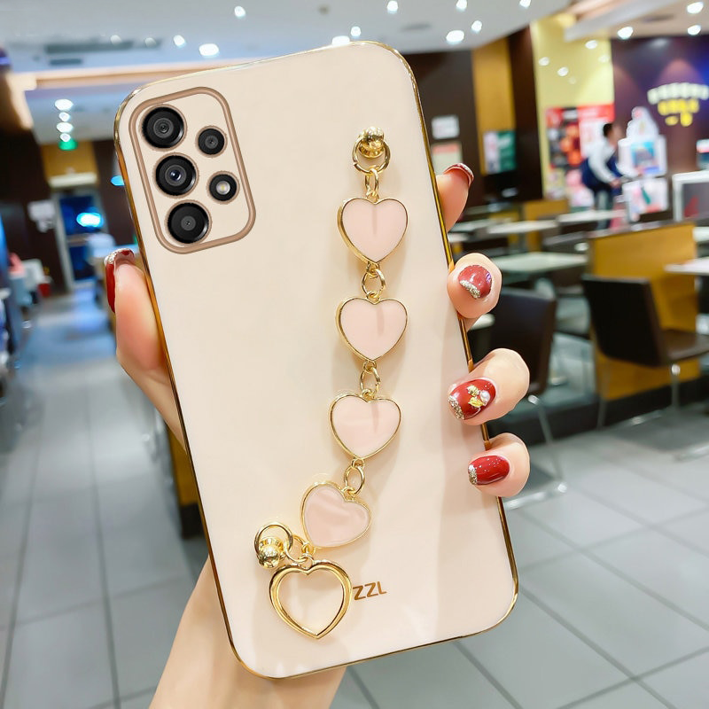 Adoptez dès à présent cette coque arrière rose poudré ornée de sa chainette de coeurs au contour doré. Elle donnera un look élégant et coloré à votre téléphone Samsung tout en le protégeant efficacement contre les rayures et les chocs.