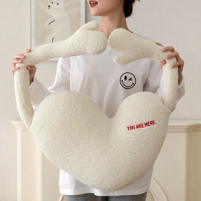 Besoin d'affection ? Ce coussin coeur à bras est le compagnon idéal pour tous les amoureux de gros câlins. En forme de grand coeur blanc aux bras tendus, ce coussin coeur à l'aspect peluche et au toucher doux est en attente d'étreintes et de câlins langoureux. Donnez à votre intérieur une touche funky et une bonne dose d'amour avec ce coussin totalement craquant. Votre enfant l'adorera et il fera un fantastique cadeau pour un proche ou un membre de votre famille.