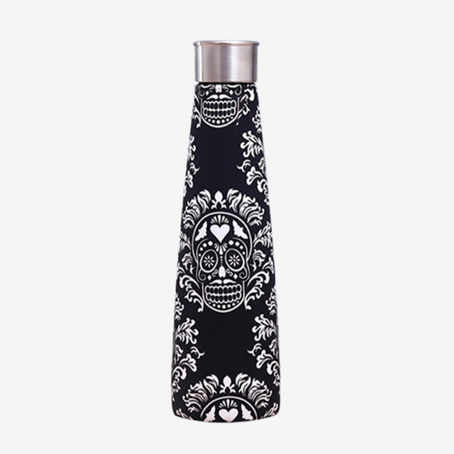 Adoptez cette gourde écoresponsable isotherme avec ses têtes de mort ornées d'un coeur, tendance noir et blanc. Conservant efficacement l’eau au frais et les boissons chaudes à bonne température, la gourde isotherme constitue l'accessoire indispensable pour s'hydrater en plein air. Facile à transporter, elle se glisse facilement dans votre sac de sport ou de randonnée et délivre un liquide conservé à bonne température.