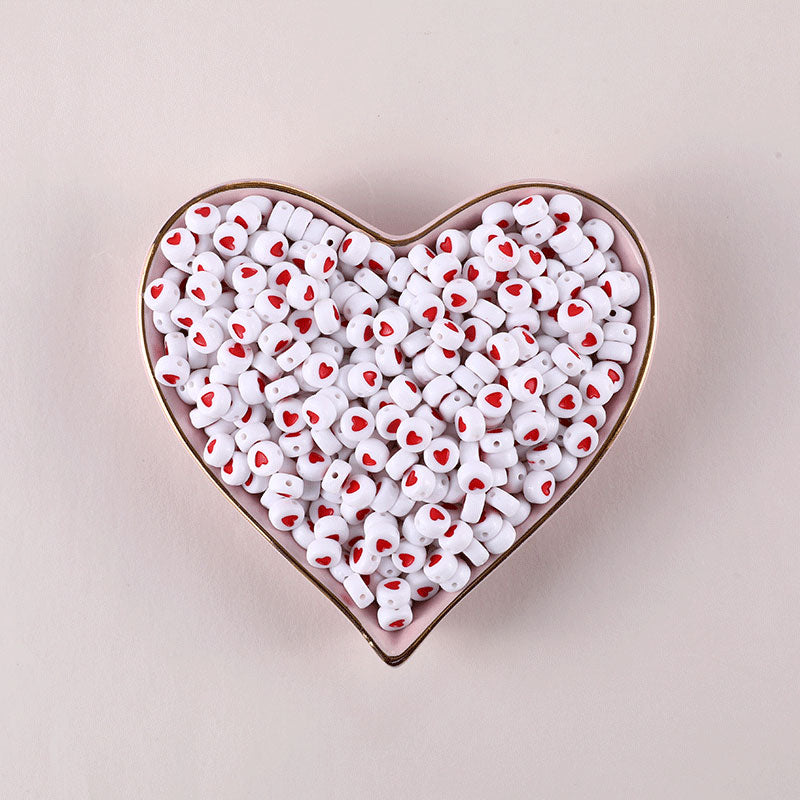Perles rondes Blanches Coeur Rouge - 100 unités est en rupture de stock et sera expédié dès qu’il sera de retour en stock.