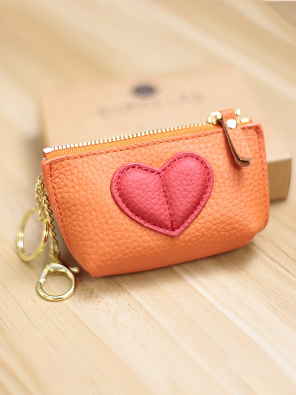 Chic et contrastée, cette bourse en cuir véritable combine courbes féminines, et finition grainée. Sublimée par un ornement rouge en forme de coeur et deux porte-clefs dorés en pendentif, elle se décline en neuf couleurs modernes et tendance. Irrésistible !